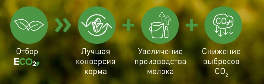 Eco² сочетает в себе признаки, которые оказывают наибольшее влияние на пожизненные выбросы метана крупным рогатым скотом: