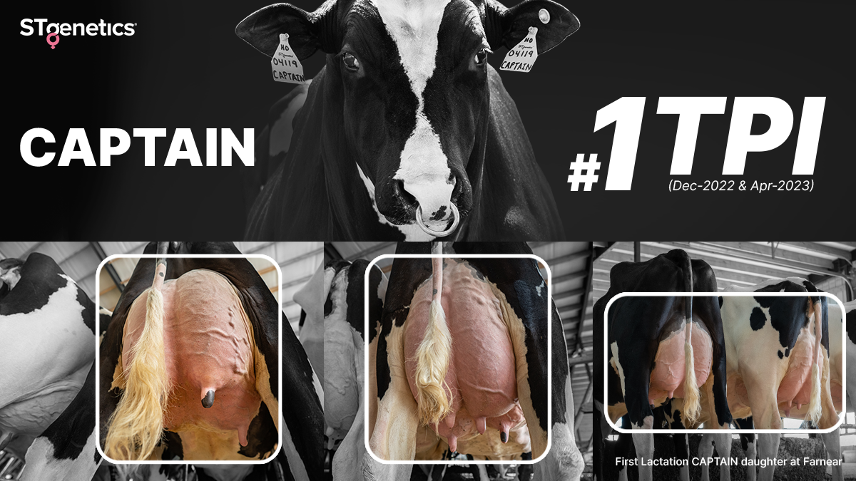 Возглавляемые лидером CAPTAIN, быки-производители компании STgenetics® заняли три из четырех первых мест в Международном списке ТОП-100 по TPI® в декабре 2022 года после публикации новых генетических данных.