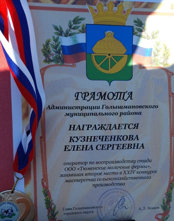 В числе операторов по воспроизводству стада сельскохозяйственных животных, принимавших участие в конкурсе, состояла сотрудница компании Cogent Rus Кузнеченкова Елена, которая в настоящий момент работает по проекту Cogent Rus на "Тюменских Молочных Фермах".