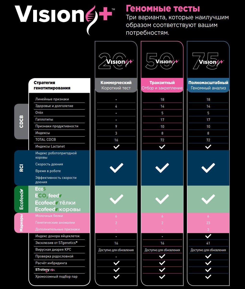 Vision+™ - это стратегическая инвестиция с различными вариантами тестирования для удовлетворения потребностей каждого стада и достижения целей каждого фермера.